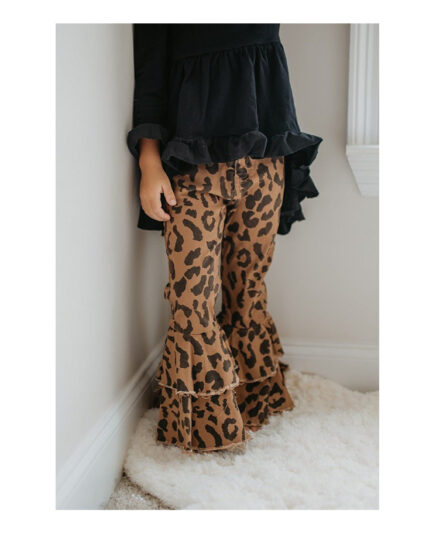 Kids Leopard Double Denim Ruffle Pant